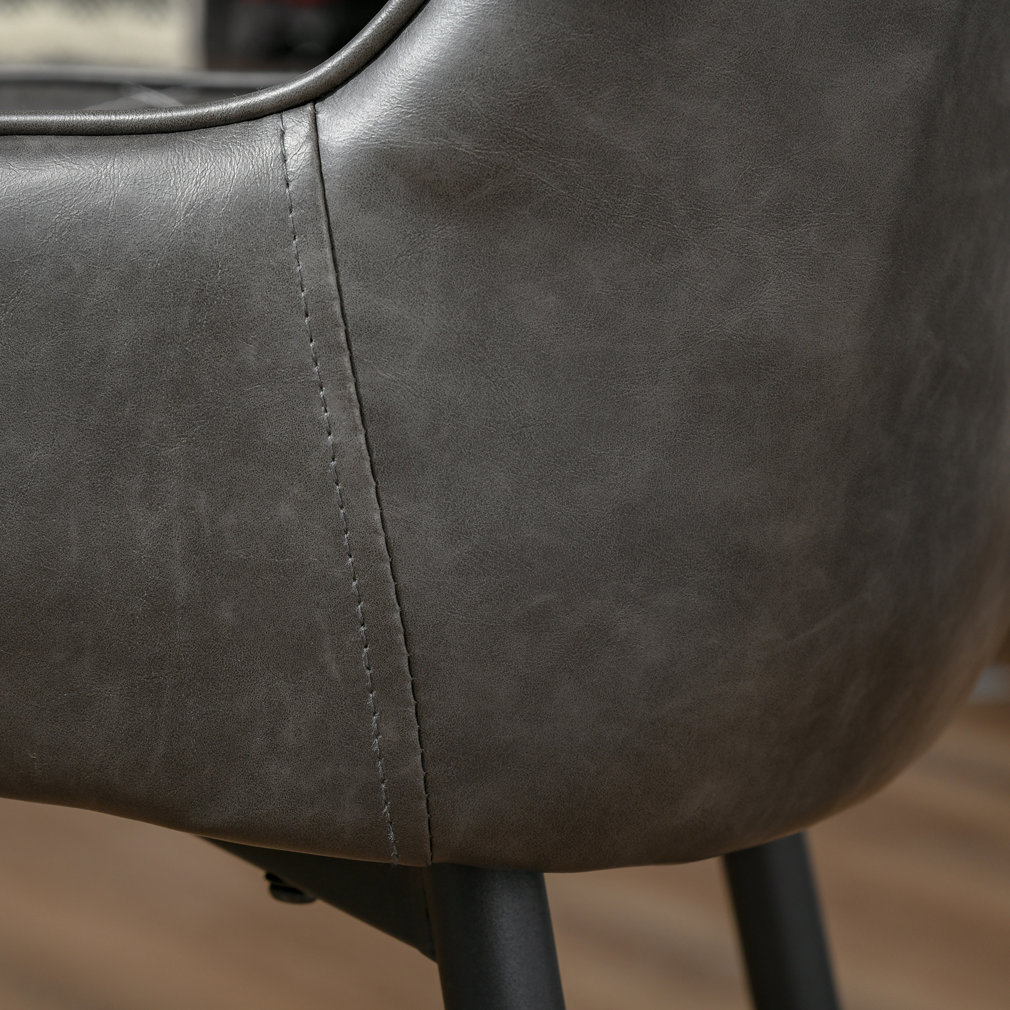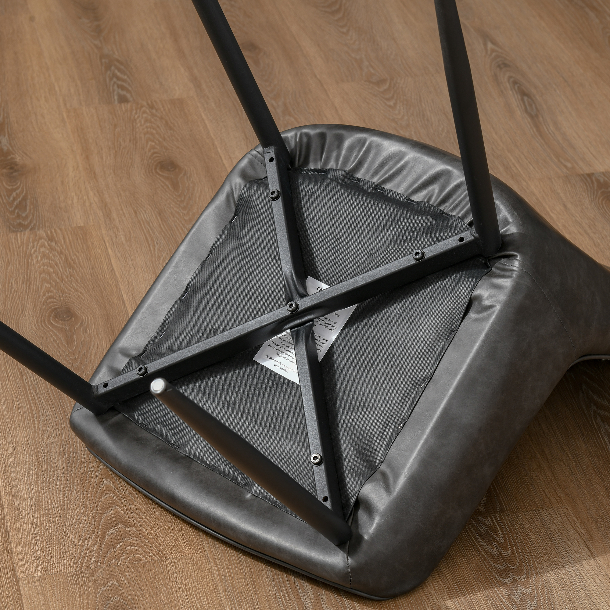 Sit down in cool, unfiltered retro style with these dining chairs from HOMCOM. With steel legs for a sturdy and fully supportive base, each chair is formed into a slightly-armless design for plenty of room when seated: the raised edges and high back help keep your body in line. Both are filled with thick sponge for comfort – the polished PU leather is undeniably cool. Finished with protective foot pads.