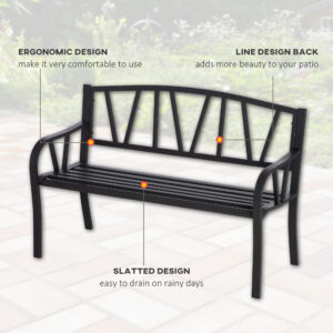 Make your garden complete with this outdoor bench from Outsunny. Made from metal, the structure of the outside bench is sturdy and tough for daily use all-year round. Whilst it’s pretty simple to look at, the line design on the back gives the 2 seater garden bench some character so it stands out. Tall back and armrests give your body support as you sit on the garden bench seat. Adding a touch of minimal style into your space has never been easier.
