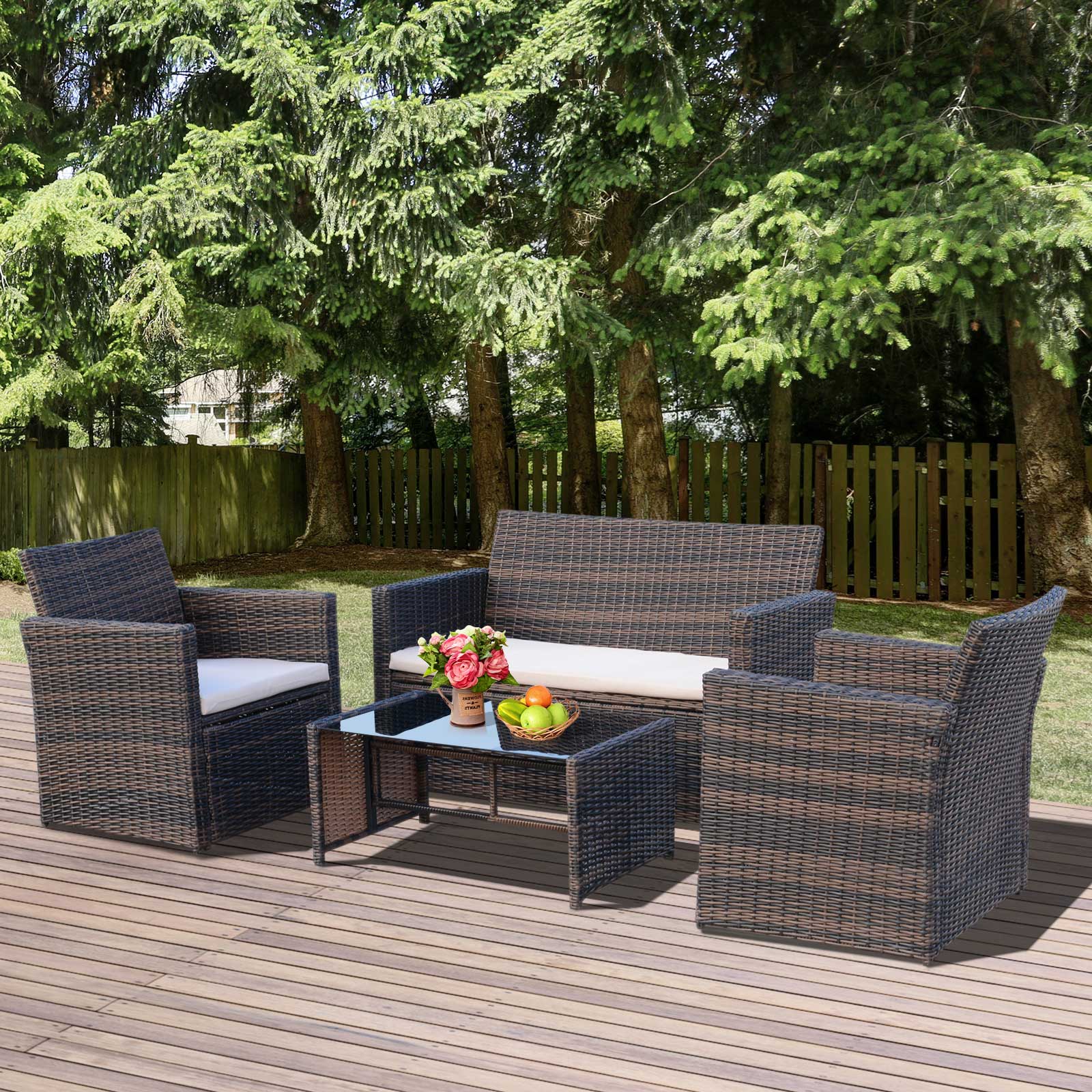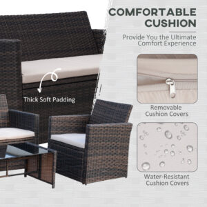 Boring patio? Brighten your garden with Outsunny’s 4 pieces garden furniture and make the outside of your home just as inviting as the inside. Oftentimes, due to uncomfortable seating or simply a lack of furniture, many outdoor furniture go underused or ignored completely. Outsunny believes that you can change all that with a simple, budget-friendly investment in our designer conservatory furniture.