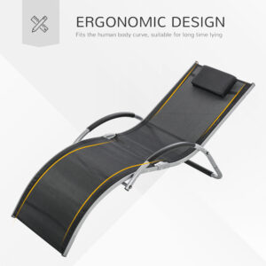 Outdoor lounging just got a lot better. Pair your days outside with this Outsunny lounger for complete relaxation. The frame is made from aluminium to be suitable for everyday use, is crafted into a smooth curved shape that better adapts to your body shape. It’s fitted with a breathable mesh fabric seat that holds your body in place, with a removable pillow for extra comfort and support to the head and neck. Finished with foam pads on the armrests and bottom frame part for extra protection.