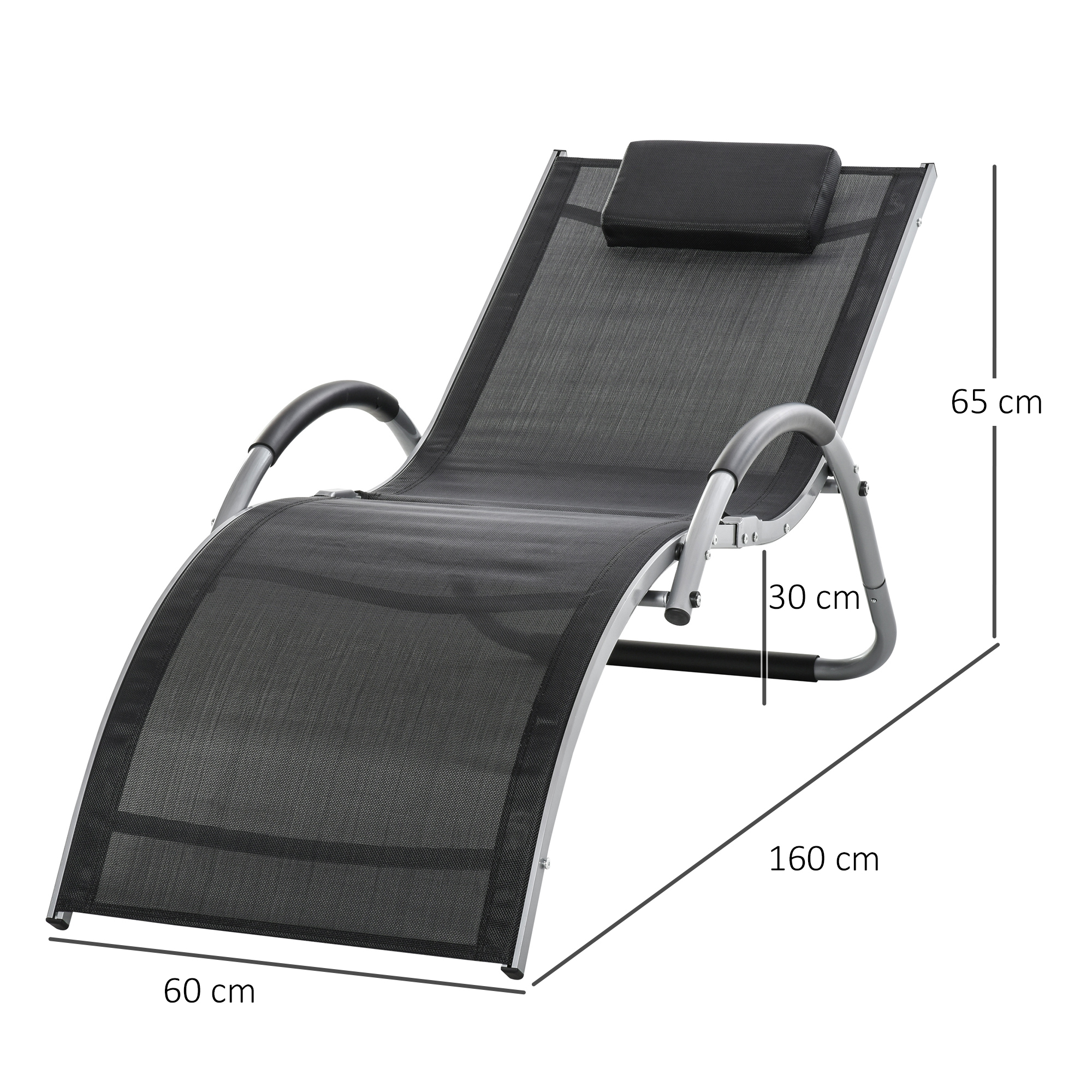 Outdoor lounging just got a lot better. Pair your days outside with this Outsunny lounger for complete relaxation. The frame is made from aluminium to be suitable for everyday use, is crafted into a smooth curved shape that better adapts to your body shape. It’s fitted with a breathable mesh fabric seat that holds your body in place, with a removable pillow for extra comfort and support to the head and neck. Finished with foam pads on the armrests and bottom frame part for extra protection.