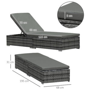Choose this lounger from Outsunny for the perfect sunbathing partner in the comfort of your own garden. Using galvanised metal for a stable and robust structure, the frame is wrapped in PE wicker rattan, ensuring durability outdoors with little maintenance. The adjustable back allows you to set it to a level which is best for you, whilst a longline padded seat provides all the comfort you need, with four foot pads completing this piece for balance and floor protection.