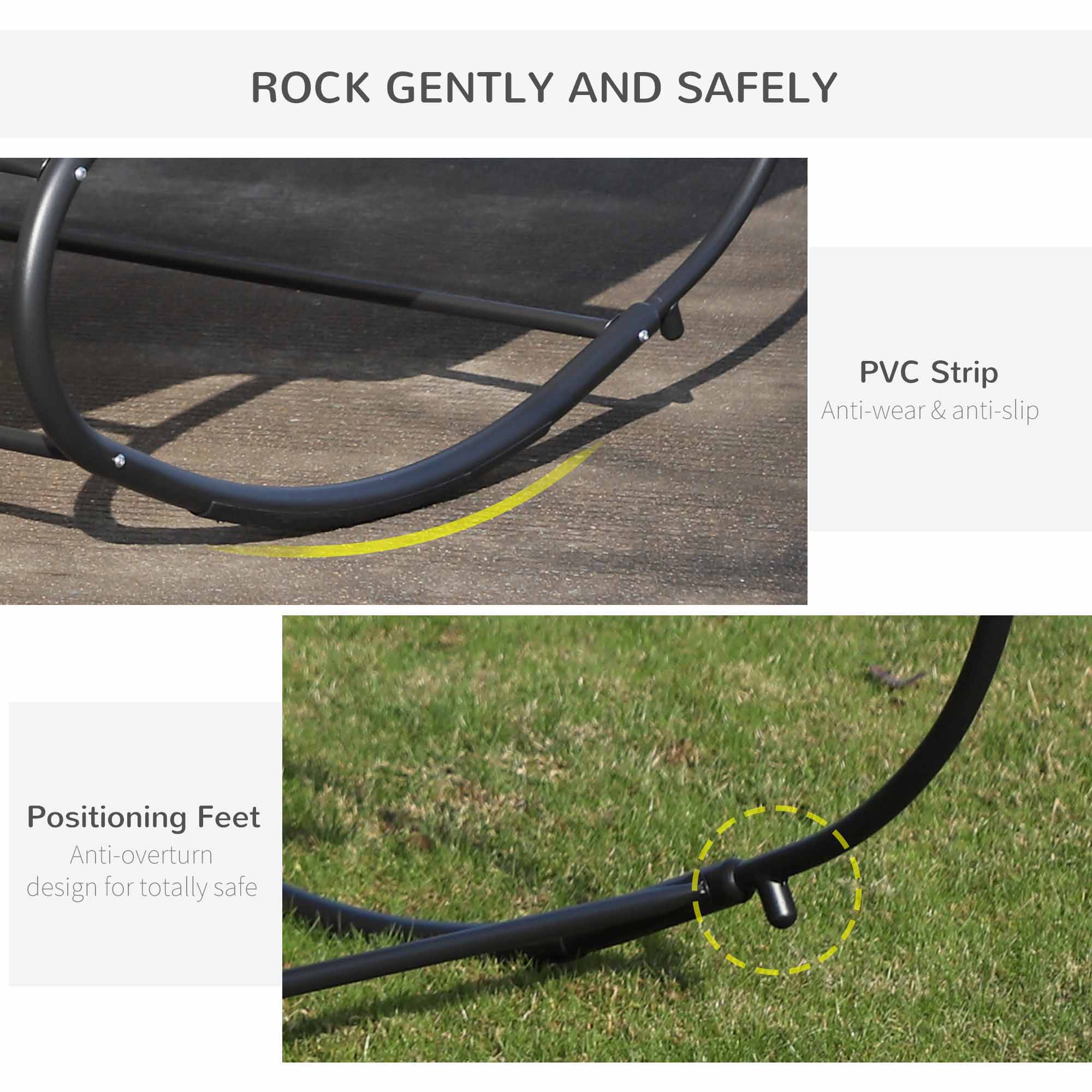 Double the relaxation with this two-person rocking bed from Outsunny. The metal frame is strong for full support, crafted into a curved zero-gravity shape, rocking forwards and backwards gently. The texteline seat holds you properly, and there’s a top pillow for comfort. Seat is water-resistant to keep it lightly dry. Take your outdoor relaxation to a new level.