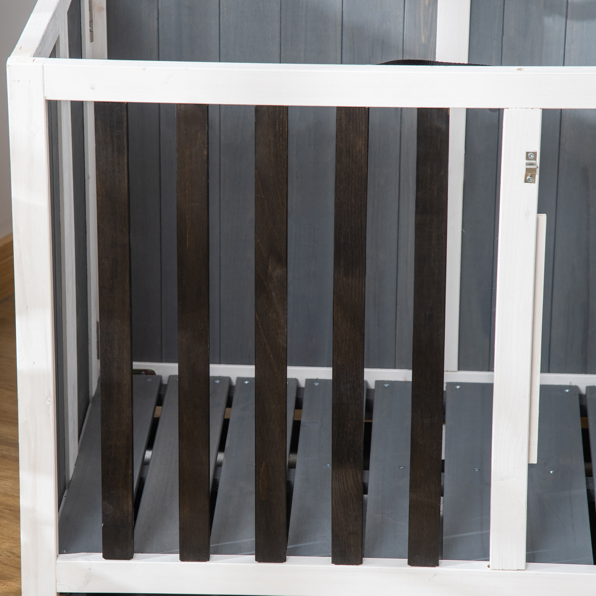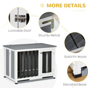Ideal for small and medium sized dogs, this indoor dog crate from PawHut offers exceptional convenience. Use the wood dog cage for anything from potty training or house training to regulate house rules and boundaries-or simply as a secure place for your pet to rest and relax. It can be used as an end table for placing pet supplies on the top. The kennel with latch on the door to keep the dog in. Removable bottom grate and tray for easy cleaning. Folding design for easy portability and storage.