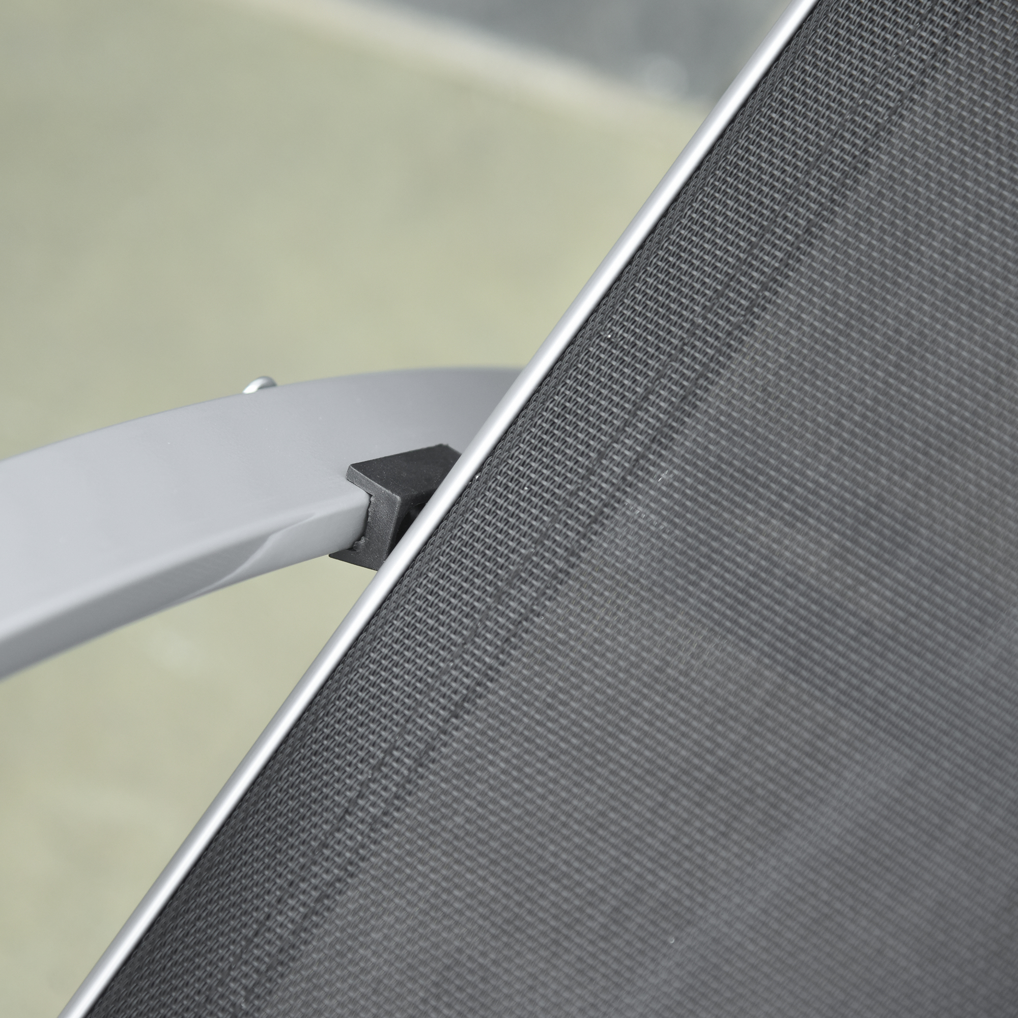 Refresh your outdoor space with the garden recliner chairs set of 3 Outsunny. Using metal for the frame of both chairs and a table, the structure is tough and durable, so it can be used every day. The sun loungers for garden are wrapped in breathable mesh for comfort and smoothness on the skin. The table comes with a thick glass top for a safe and secure holding place. Stylish and functional, this set is perfect for patios, gardens, balconies and any other outdoor space. Assembly is required.