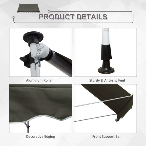 Outsunny Balcony 3 x 1.5m Manual Adjustable Awning DIY Patio Clamp Awning Canopy Retractable Shade Shelter