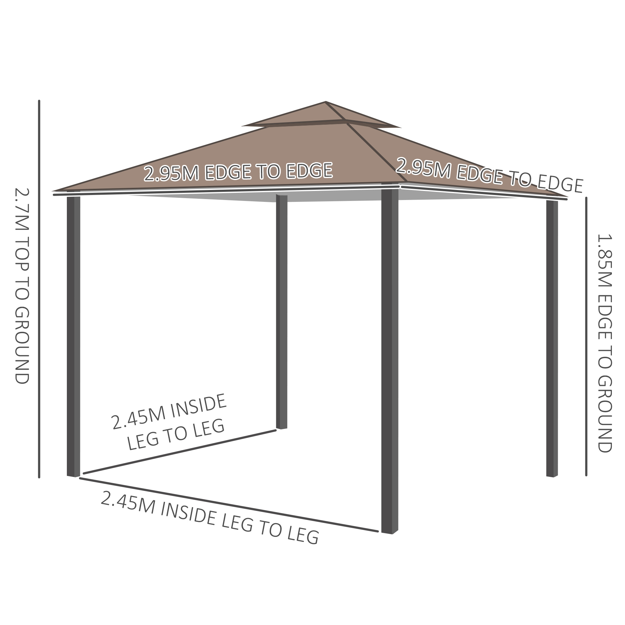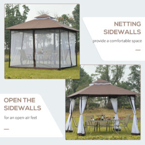 This Outsunny metal gazebo is a great addition to your Garden, Patio or paved area of your home. It has a metal frame with a UV resistant polyester top cover and side nettings. The top cover also features a double roof design for air circulation with 8 drainage holes for rain. The strong gazebo comes complete with side net walls which are great for protecting from bugs and flies. A multifunctional garden gazebo for any occasion which will match any outdoor d??cor.