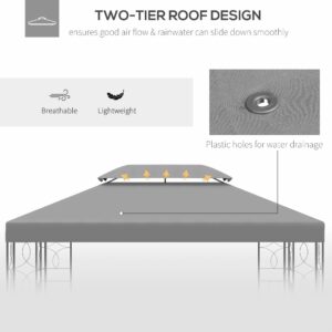 Outsunny 3x4m Gazebo Replacement Roof Canopy, 2 Tier Top UV Cover Garden Outdoor Awning Shelters, Light TOP ONLY
