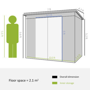 This galvanised shed from Outsunny is made of high-quality steel, which is durable, resistant to corrosion and will stand proudly in your garden. Our outdoor shed is fitted with an inclined steel roof to prevent water build-up, a double door for easy access this mobility scooter shed and two vents for air flow inside to prevent mould, mildew and humidity build-up. This pent shed is an all-round fantastic solution for storing your outdoor equipment and tools.