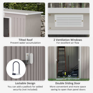 - Air vents to keep bike storage metal shed inside fresh and aerated
