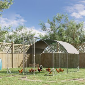 Keep small pets protected outdoors with this PawHut chicken coop. Hexagonal mesh fence gives access to fresh air, whilst the cover keeps them protected from hot and wet weather. It’s a spacious area that can fit between 6-12 chickens ?? there’s enough room to roam around. With a lockable door to keep animals safe, they won’t escape and predators cannot get in. A comfortable space for animals to enjoy outside.