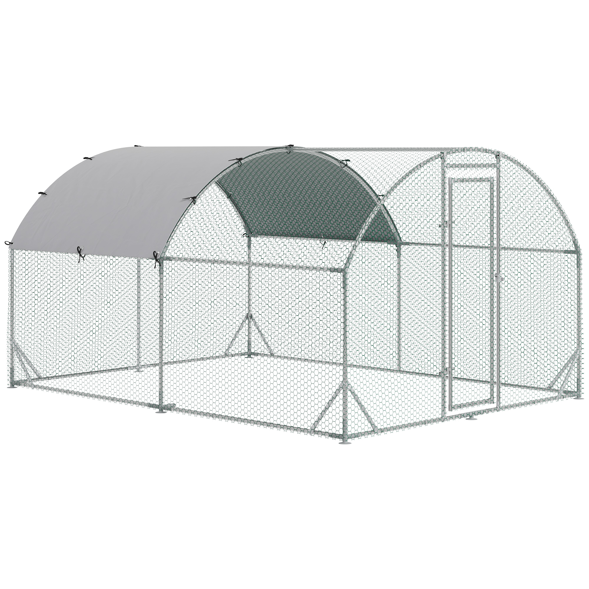 - Hexagonal mesh keeps pets securely in the coop