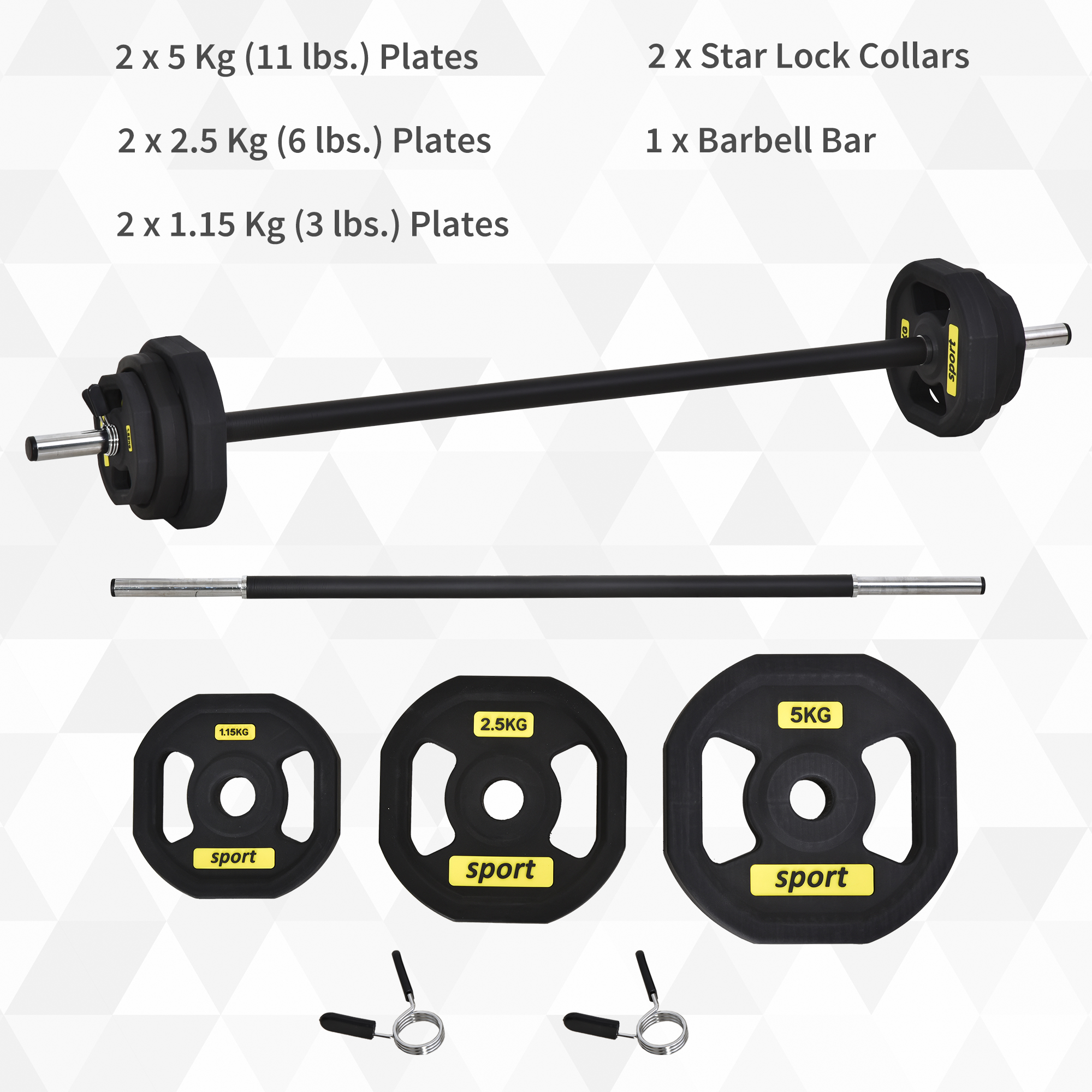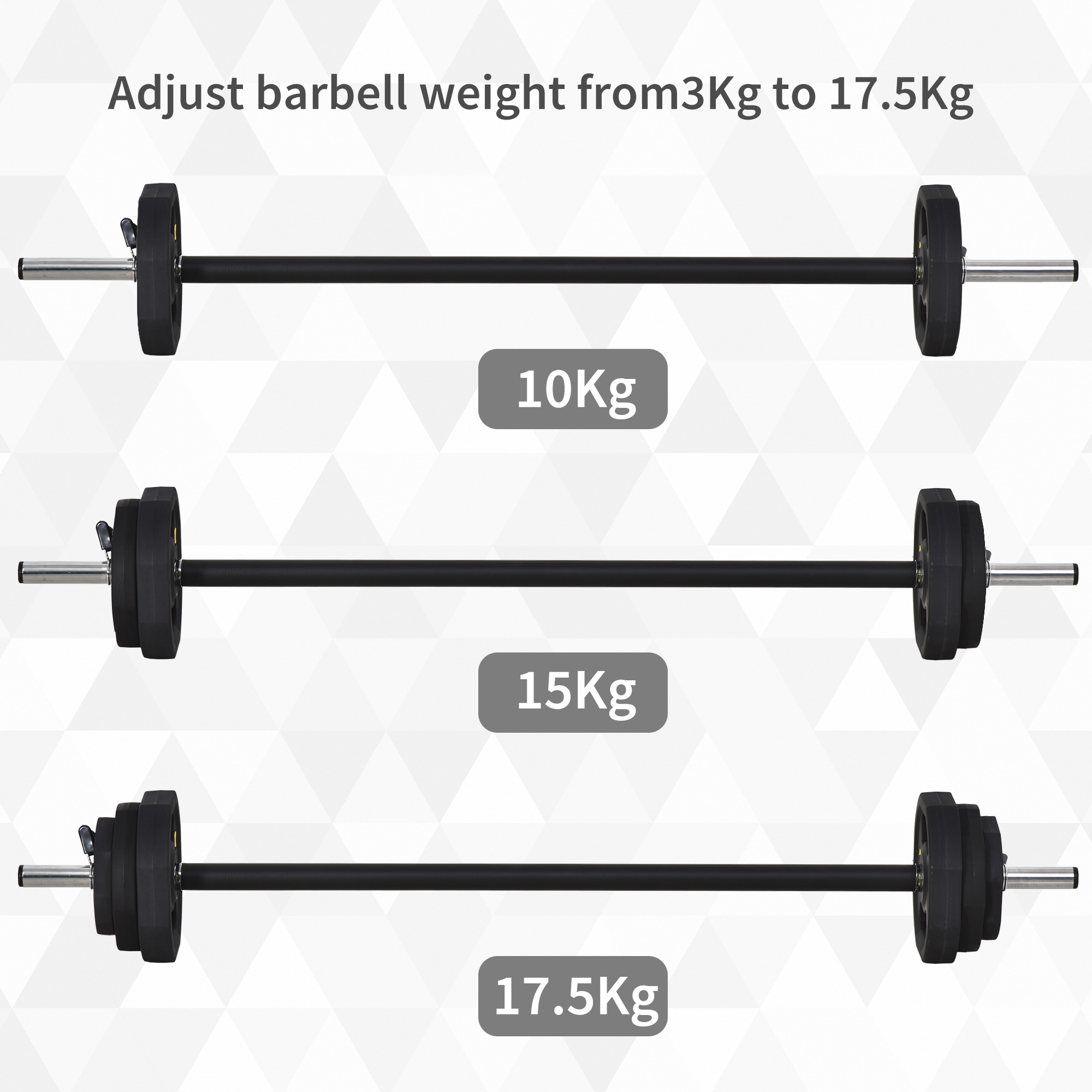 This 20kg barbell set from HOMCOM is perfect for beginners and moderate weight lifters. It comes with three differently-weighed weights – 5kg, 2.5kg and 1.15kg – so you can build up the heaviness whenever you want to. The steel barbell is tough and supportive, as well as suitable for daily use. Set also comes with end clips to hold the weights in place on the rack.
