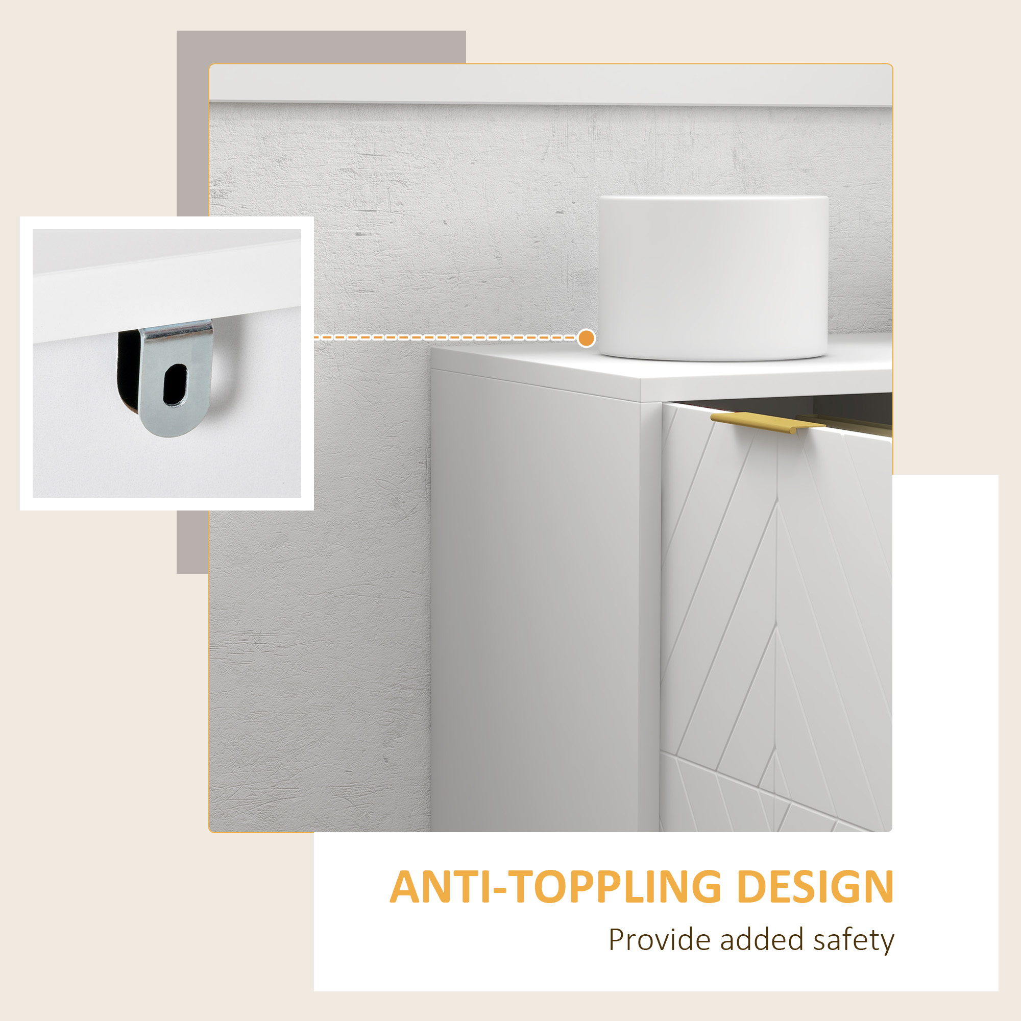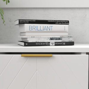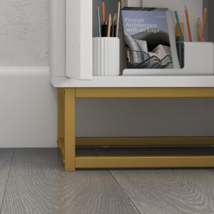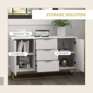 Ready to organize your home space? Pick up the drawer cabinet, and you’ll be ready in no time. This clean and sleek indoor cabinet with luxurious gold base and coordinating hardware accents will perfectly match your interior styling. Three drawers and two door cabinets offer an abundance of versatility to effortlessly organize and store away your daily supplies and utensils. Crafted of MDF and steel, it is a durable and attractive addition to your house