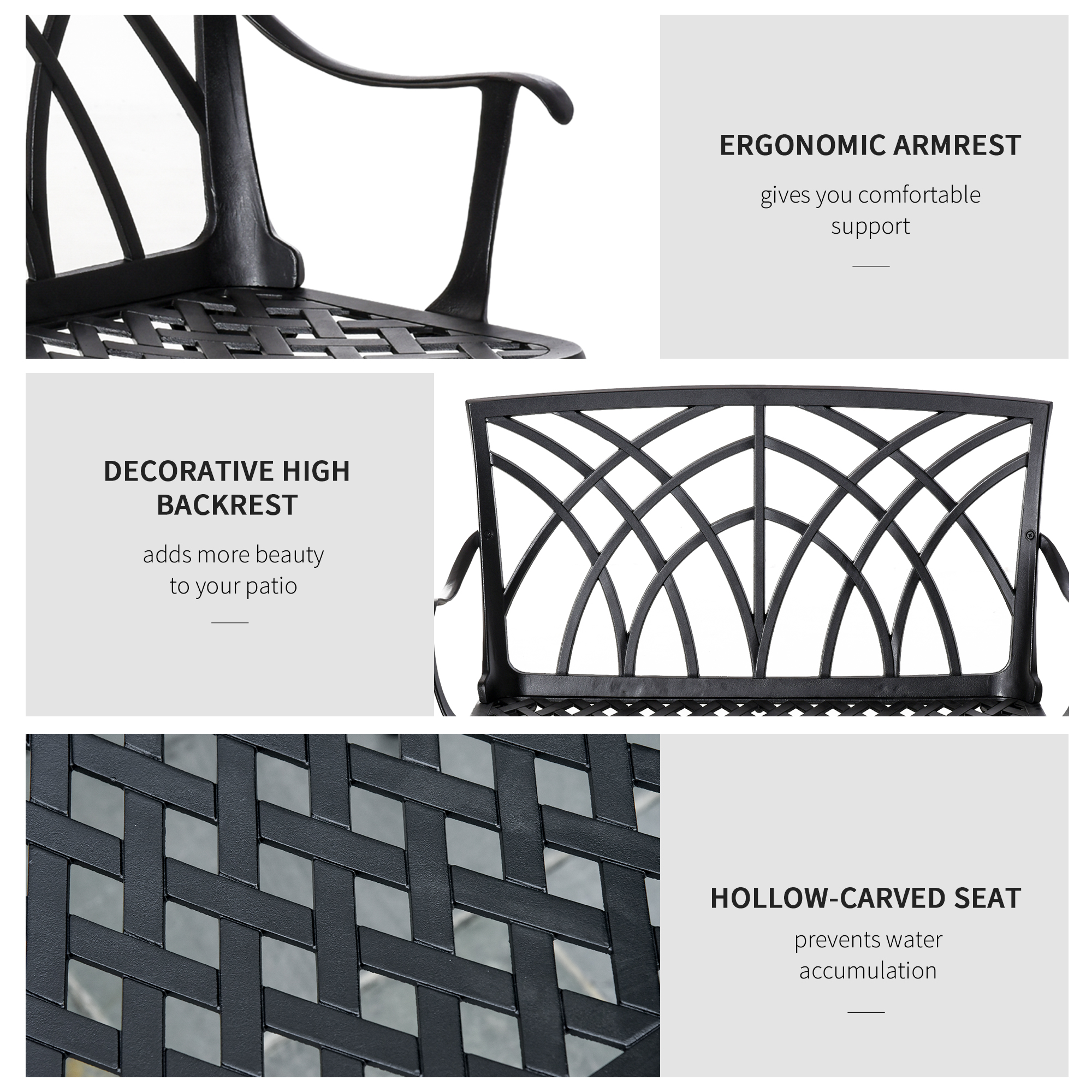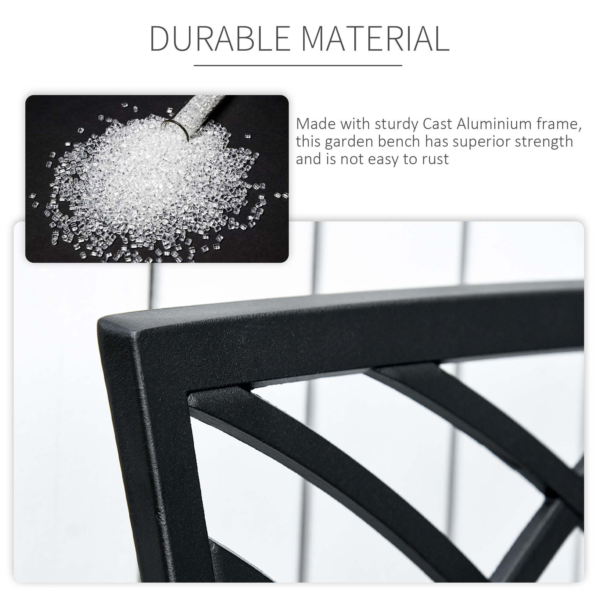 Complete your garden in cuteness – pick this two seat garden bench from Outsunny. It’s made from cast aluminium, so it’s tough and solid; a structure which will support you as you relax. The back features a curved line design for a unique look – a design which will look great anywhere. Its cut-out panels on the seat means water won’t build up, and it’s finished with curved armrests to support your body shape.