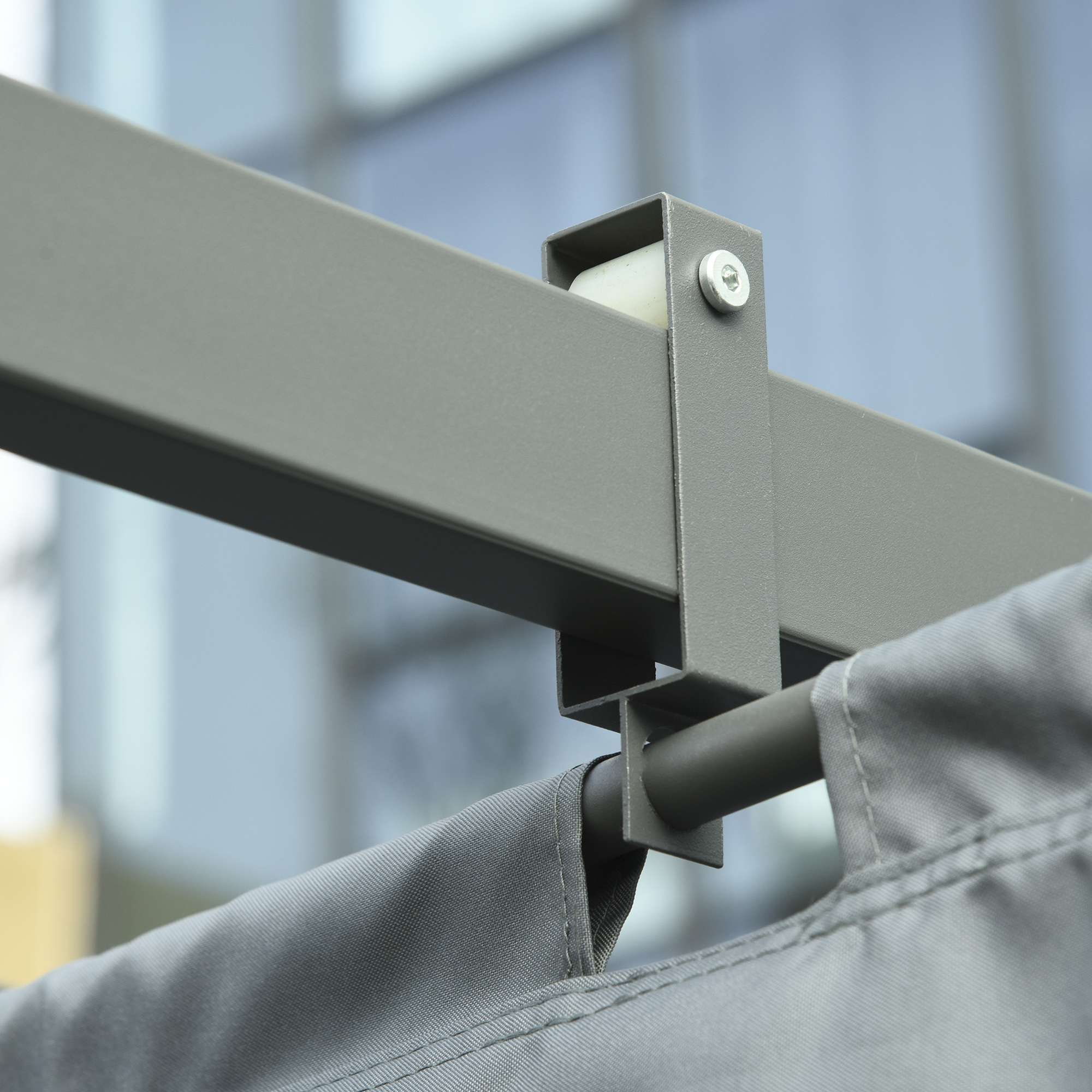 Outsunny 3.6 x 3m Outdoor Pergola Gazebo Retractable Canopy Garden Shelter Sun Shade Party with Curtains, Aluminum,