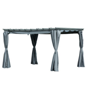 Outsunny 3.6 x 3m Outdoor Pergola Gazebo Retractable Canopy Garden Shelter Sun Shade Party with Curtains, Aluminum,