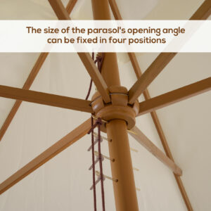 - Stylish wooden parasol, superior in material and excellent in workmanship. Combined traditional workmanship with modern aesthetics, unique and utility.