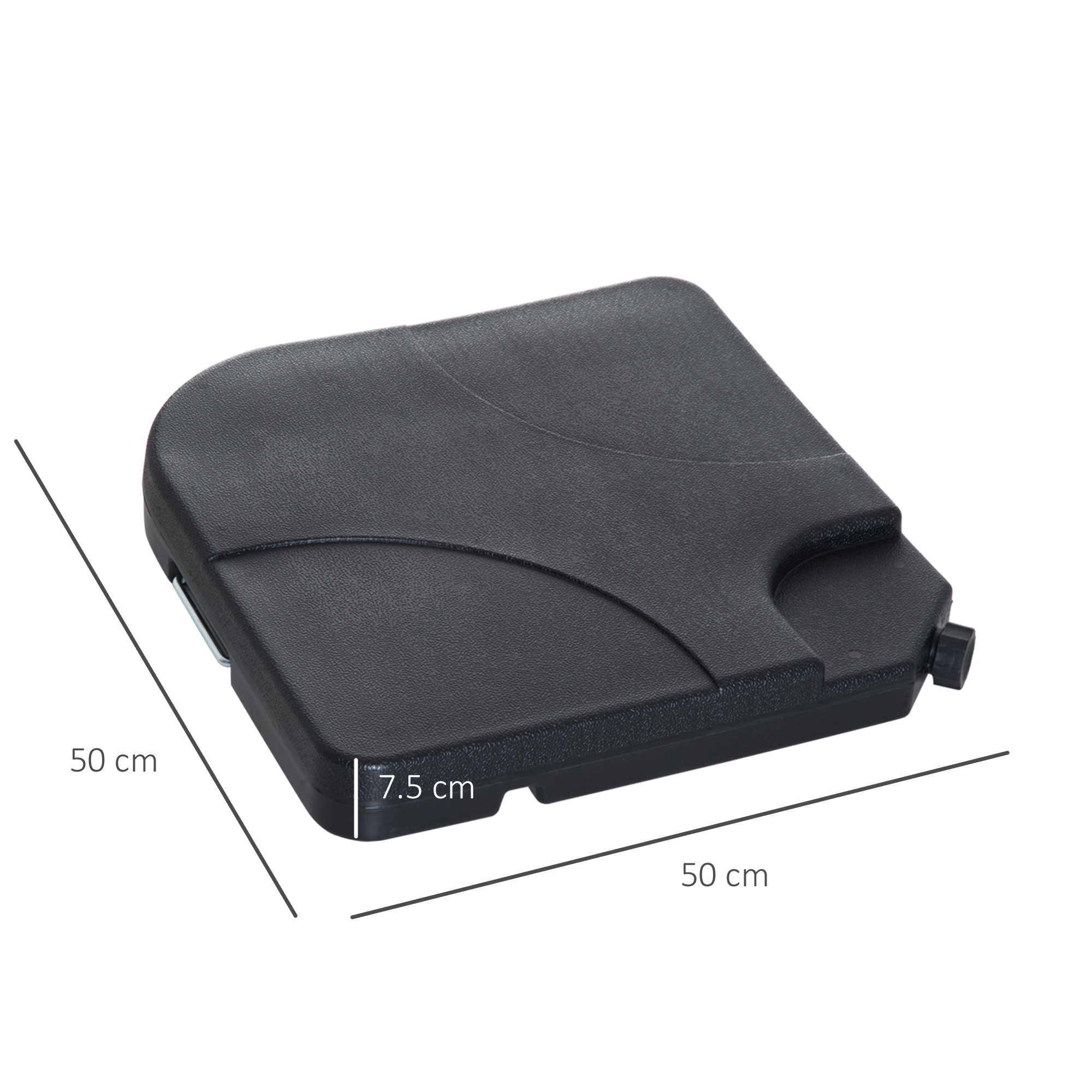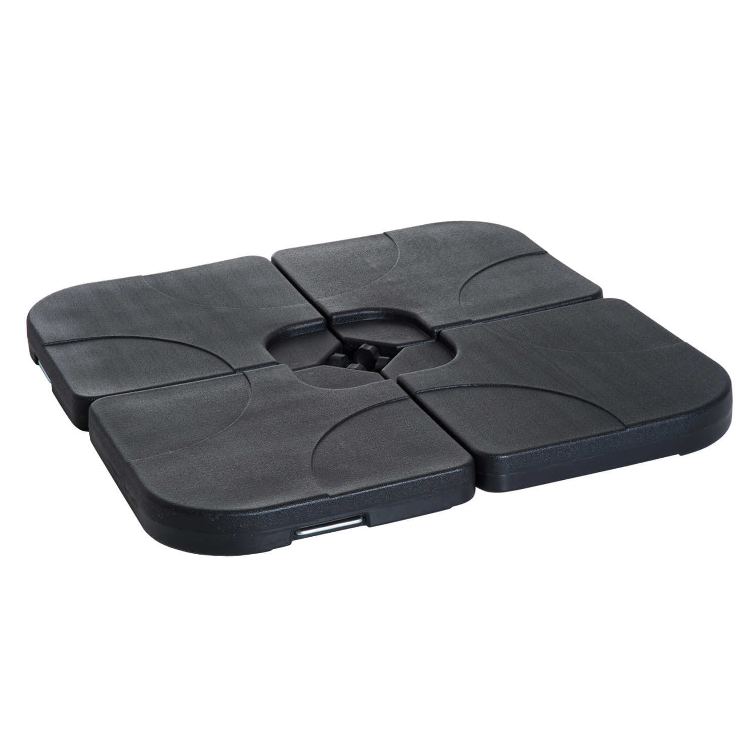 This Outsunny umbrella base weights are a great accessory to have to keep your parasol, umbrella steady. It comes in 4 piece configuration to be placed on the cross feet of your umbrella. Made from a high density polyethylene material, it can withstand most weather elements. Each of the pieces can be filled with water or sand to make them heavy and more secure, it also has handles on them if you do require for them to be moved. This is a great essential to have as part of your umbrella to keep it safe and secure.