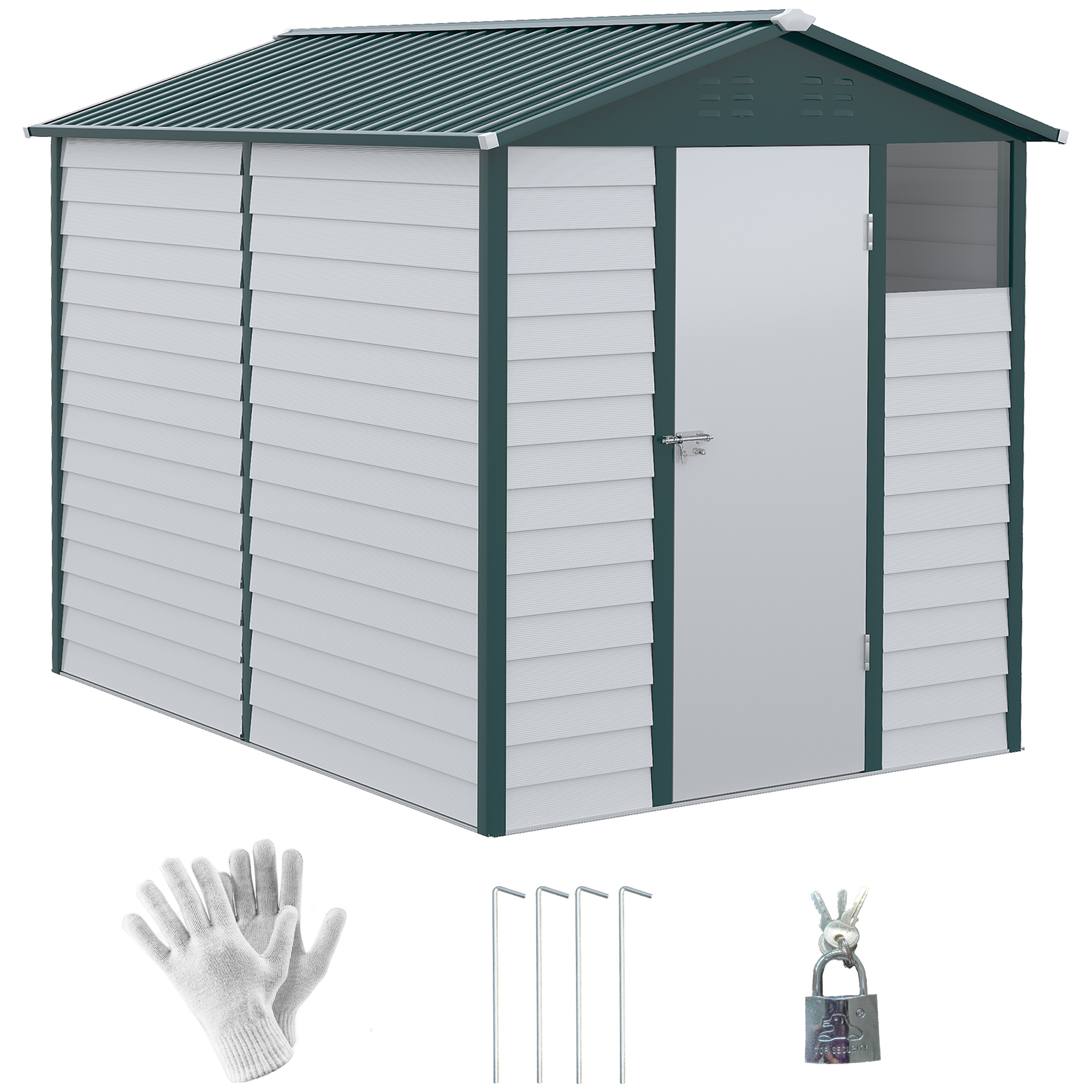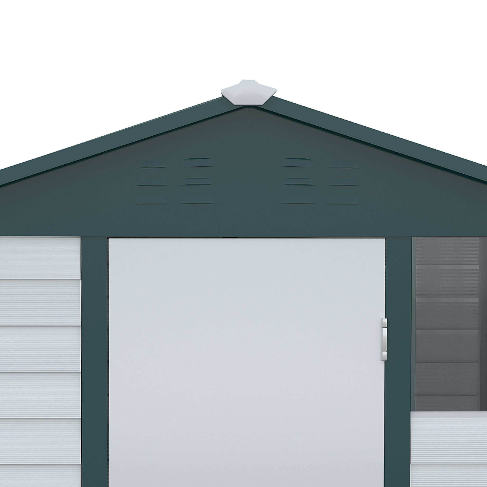 A strong and spacious metal storage shed, from Outsunny. Keep tools, equipment, outerwear and more stored together. Open size inside, means you can keep it how it is, or introduce some shelving for extra organisation. Made from galvanised steel, the panelled structure creates a safe shell from the elements. A window to let natural light in. Ventilation slots for keeping it fresh. Complete with a lock and three keys – so you can secure this outdoor storage shed from unauthorised access.