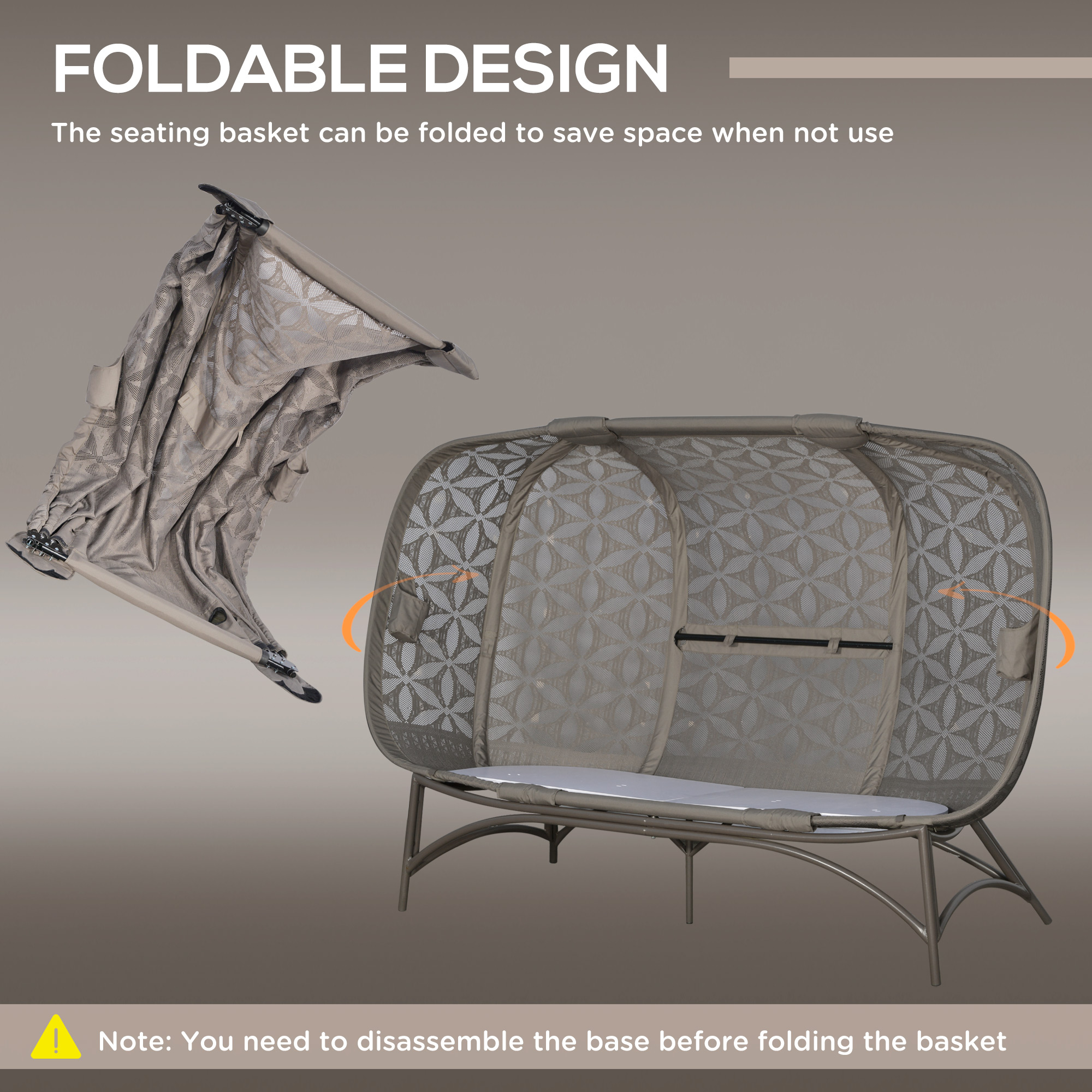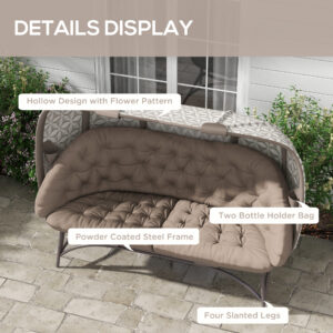Enjoy the warm weather and beyond with this Outsunny longline egg chair. Seats up to three people – relax with a company or grab an extra room. The powder-coated metal frame means a robust and supportive structure, with the evenly-spaced legs helping keep the balance. It comes with a removable seat basket so that you can store it away safely and efficiently.