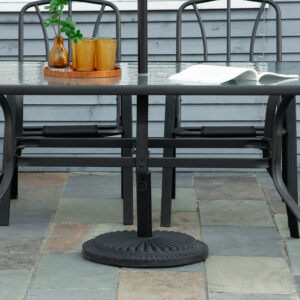 Keep parasol umbrellas stylishly in place with this base from Outsunny. Using a strong blend of a thick plastic shell, with a cement filling, it is able to hold up 14kg of weight in place effectively, keeping your sun shade in place whilst you relax. On the top, an oblong repetitive petal patten is embossed for charm, with the pole holder featuring a holding screw which can keep poles with diameters of 35mm,38mm and 48mm upright and stable securely.