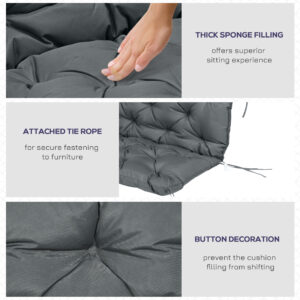 This replacement cushion for outdoor furniture, from Outsunny, is ideal for metal or wooden pieces. It provides extra comfort to your existing seating. A soft fabric cover is water and stain resistant. Easy to spot clean (can not be machine washed!) Filled with sponge for comfort. Completed with tie fastenings to fix securely in place.