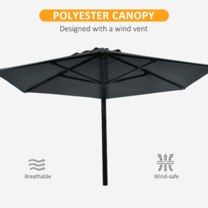 Like to read in the great outdoors? Enjoy picnics out in the summer breeze? Say goodbye to sunburns this summer with Outsunny 2.5 m parasol. Wall-mounted design makes it save space without sacrificing shade protection. Our patio umbrella offers ample shade at an ideal position that you control with its 180?¨ rotating canopy. Made of polyester fabric and a sturdy aluminium frame for outdoor-ready . Take the hot tub umbrella home and it will provide soothing shade for you throughout the summer.