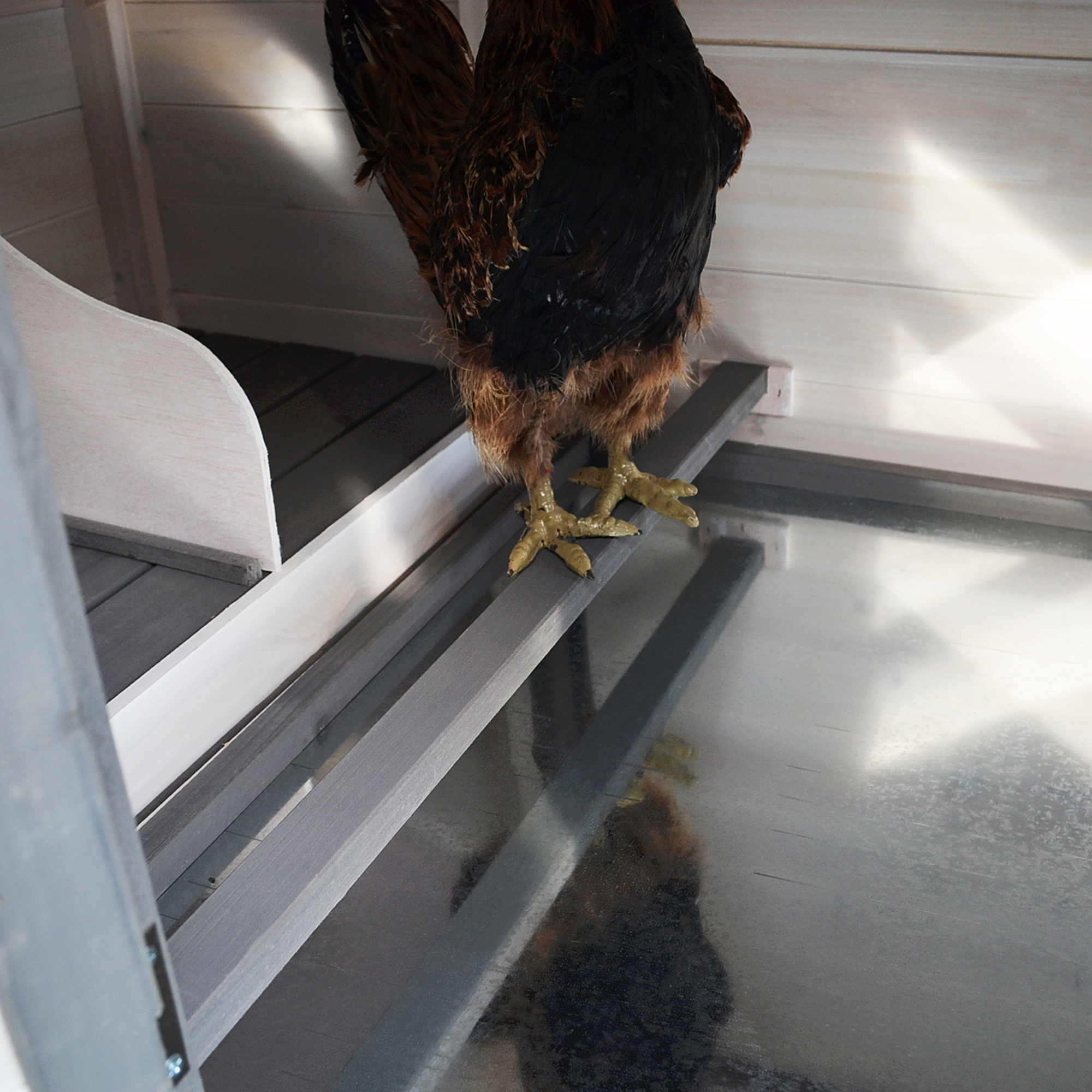 - Hinged nesting house roof for easy extracting eggs
