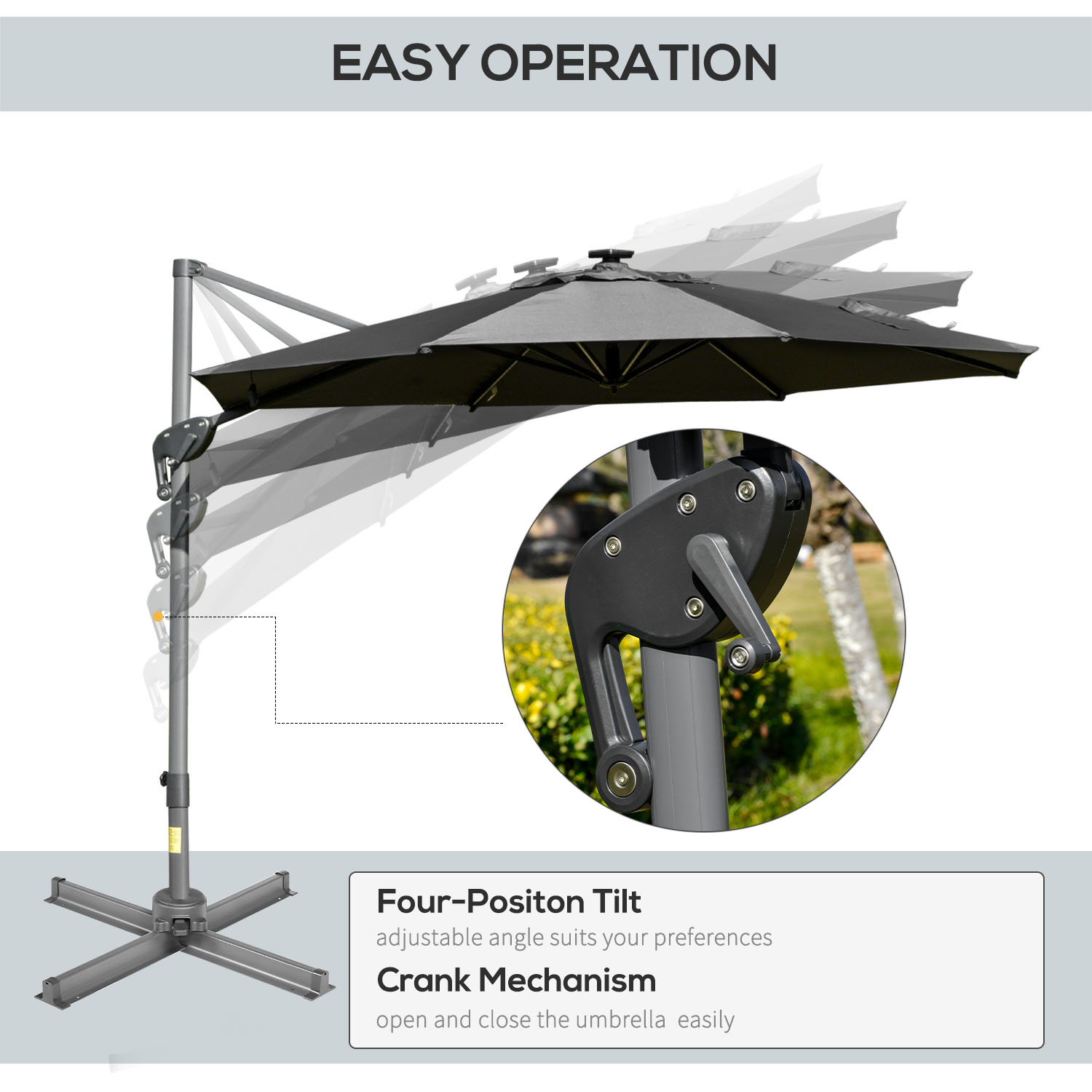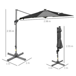 Bring a feeling of sitting underneath the stars at night at any time. This 3m Cantilever Parasol with lights from Outsunny would make it. The LED lights are solar-powered, meaning there’s no electricity required. The large garden parasol with base will keep you and your friends protected from direct sunlight and heat; it can be set to four different angles and spins around a full 360?¨ so you can find a position best for you. Evenings out in the garden have now been extended the beautiful way.n