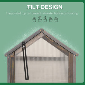 Give your plants and vegetables somewhere to grow healthily, thanks to this small wooden greenhouse from Outsunny. This mini grow house is made using a wood frame, so it solidly keeps in shape, fitted with transparent polycarbonate panels: they keep the heat inside whilst the transparency allows the sun to shine through as best as possible. Roof opening provides proper ventilation and easy access to your plants. Add a touch of green for your garden with this simple cold frame design.