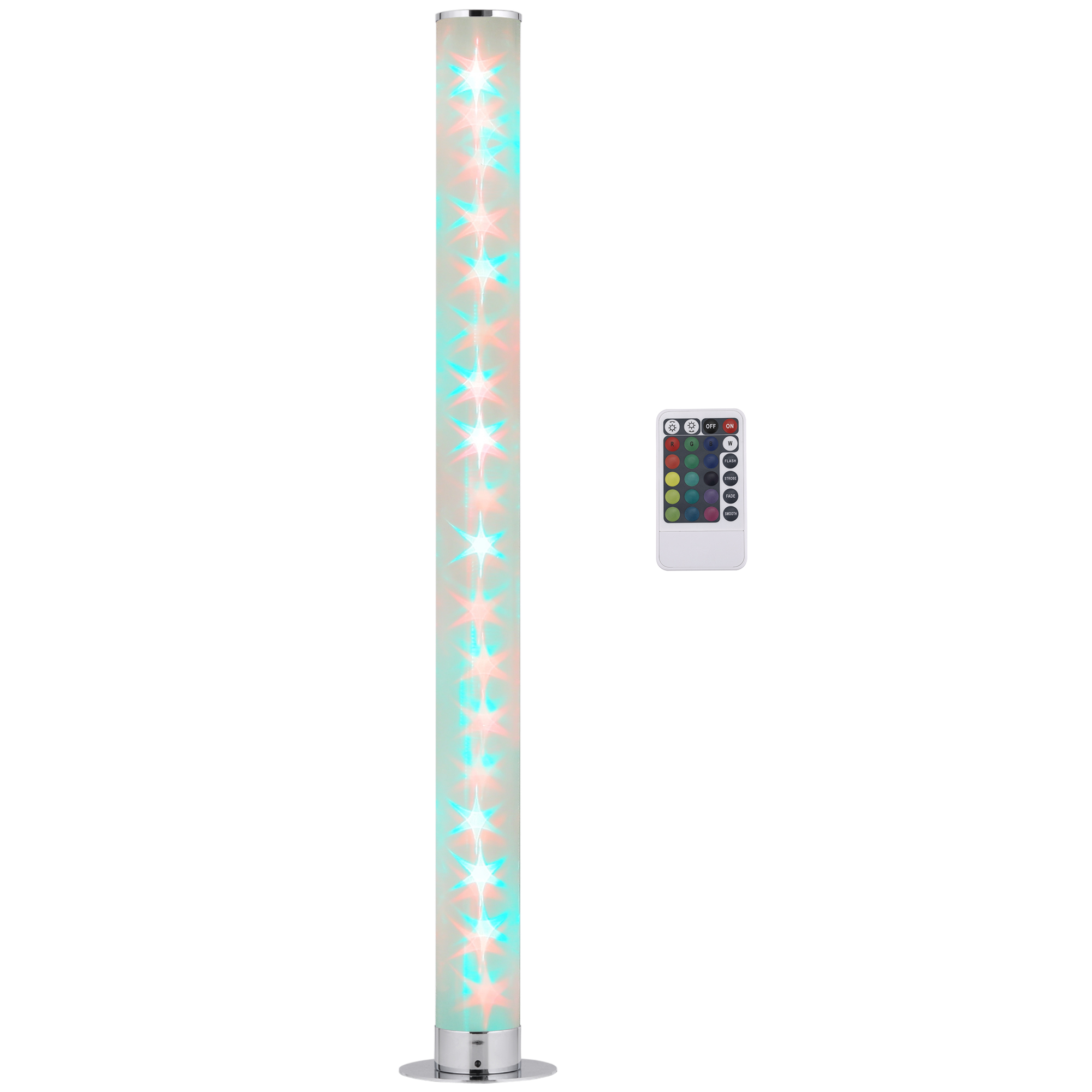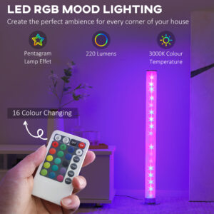 Get the futuristic glow in your home, whilst adding a retro feel: say hello to this HOMCOM RGB standing lamps for living room. A tall cylindrical shape, its clear tube design lets the lights shine through for full beautiful effect. Inside, there are 16 RGB colour changing lights which filter through a range of core colours – set to a tone which suits your mood. You can also adjust the brightness, speed and effect (flash/strobe/fade/smooth). Comes with a remote to control easily from a distance.