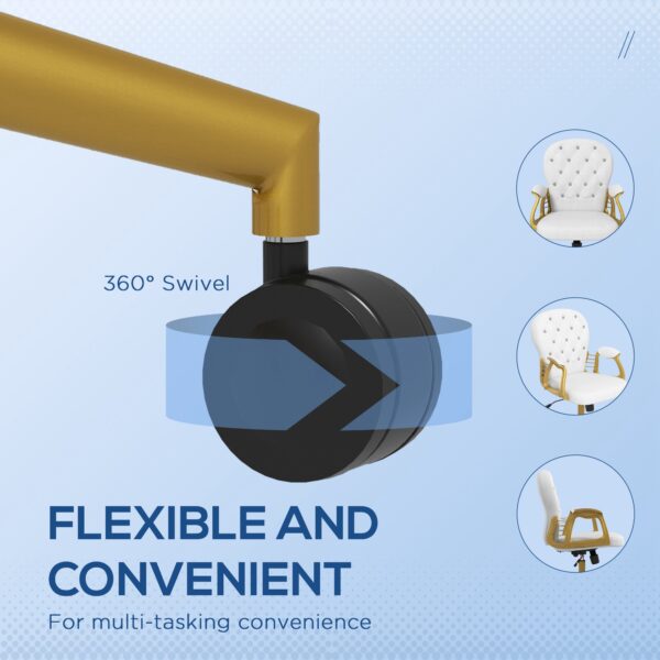 Inject a touch of glam and sophistication into your work day with this desk chair from Vinsetto. The computer chair is ergonomic with a thick padded cushion, a high and slightly-curved back, high armrests and an adjustable height. Wrapped in soft velour upholstery over the strong and supportive frame, the swivel chair is finished with crystal tufting on the back for a glamorous finishing touch and a 360?¨ swivel base with five wheels for easy movement. A sparkling addition to your home office.