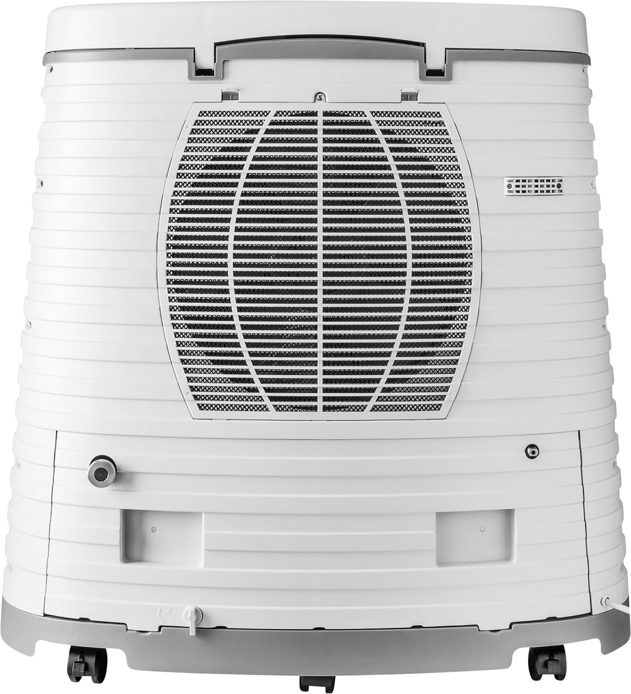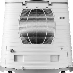 Industrial evaporative humidifier with timer and humidity settings, featuring a 30 L tank capacity, multi humidity settings (low 30%, medium 45%, high 60% and continuous), 500 m3/h airflow, adjustable louvres, water funnel for easy fill, tank full/empty warning lights and three timer settings (2, 4 and 8 hr). The product is manufactured out of high impact resistant ABS and is fitted with 6 discreet castors for ease of movement.