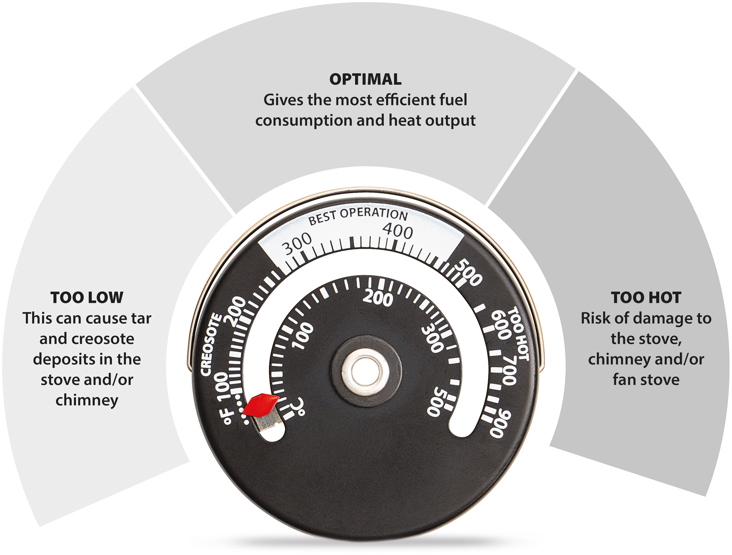 - Magnetic Thermometer – Attaches Directly to the log burner or fire