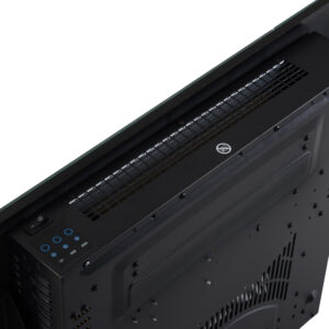 - LED display shows time, timer, temperature, heating option, flame colour, etc.