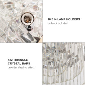 • ELEGANT STYLE: Luxurious ceiling light with 122 triangle crystal bars and 10 lights (bulb not included), provide a soft illuminating feel, create a romantic and peaceful atmosphere