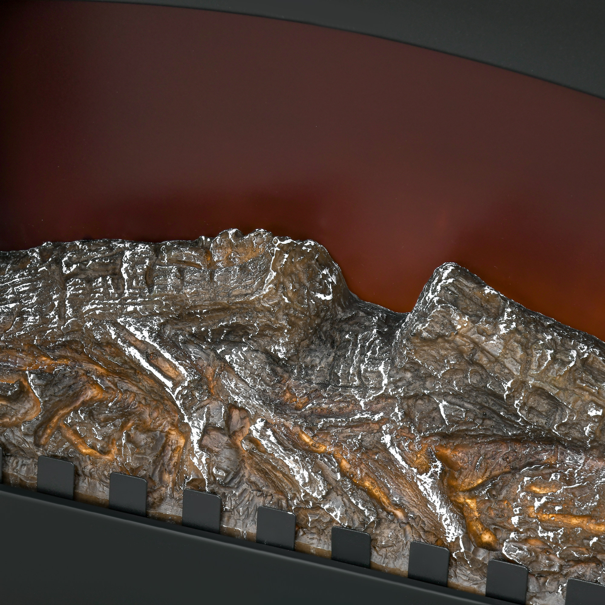 - Freestanding electric fireplace with transparent tempered glass front for better viewing