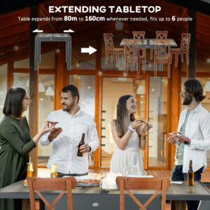 Unexpected guests? No need to worry giving them a place to dine from outdoors. Grab this Outsunny expandable table. From 80cm to 160cm, the length can fit up to six people. The frame is made from aluminium – strong and suitable for outdoors, with a wood-effect table top for a beautiful natural design. It’s easy to wipe clean too, making cleaning up those spills super easy.