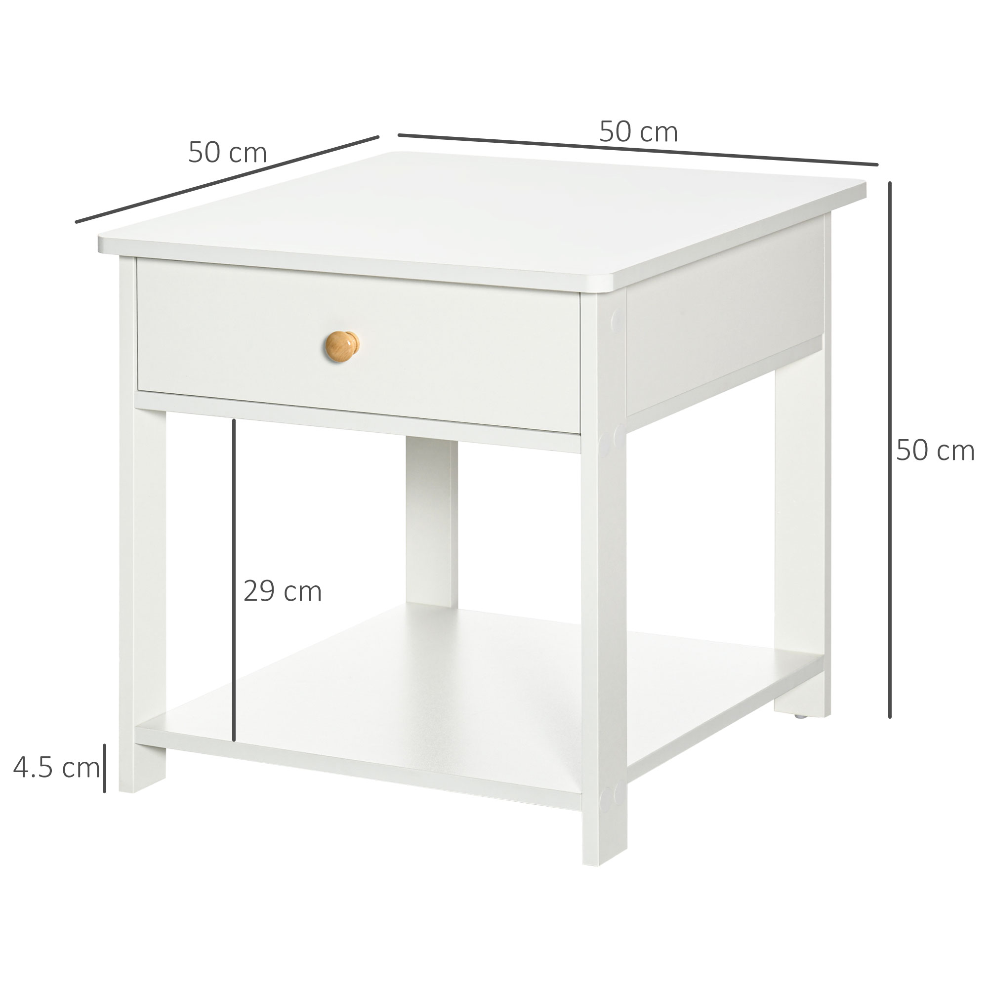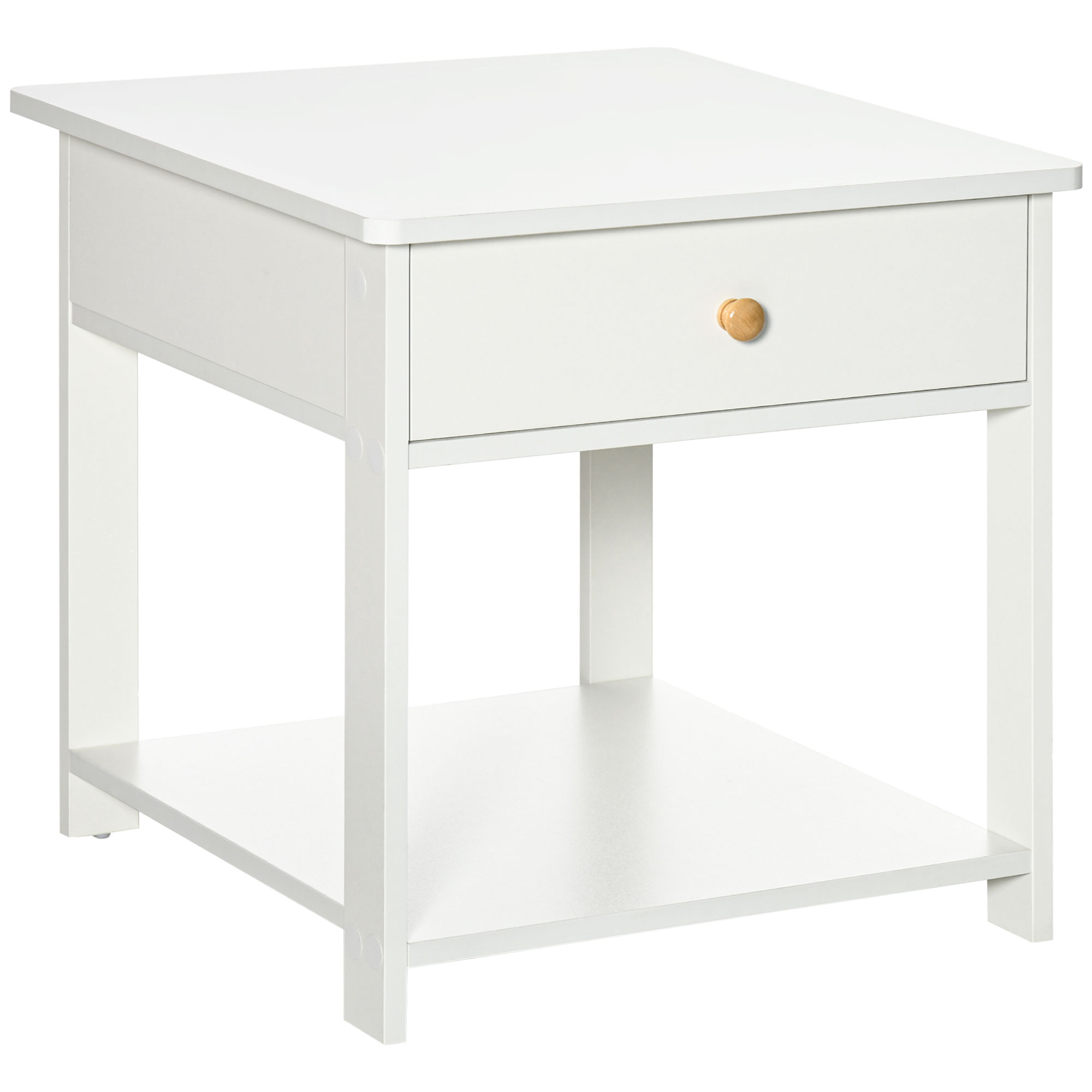 Effortlessly bring extra storage in your bedroom and beyond – do it with this HOMCOM piece. A clean white design for a contemporary look, made from particle board for sturdiness. It comes with a top drawer for discreet storage of smaller items, with an open bottom shelf, which allows open holding space of larger items. Use the flat top for a light and alarm clock. Not just for the bedroom, use this all over the home too.