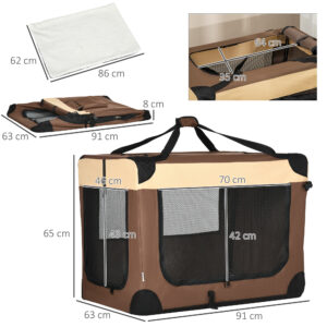 Struggle to travel with pets? With this PawHut fabric dog crate, you’ll struggle no more. Its adjustable strap goes over your shoulder, so it’s much easier carrying cats or large dogs. Three doors for easy access ?? they’ll enter a spacious area, where they’ll relax on a soft cushion, whilst the air flows through the mesh window to keep them cool. It’s foldable and comes with a bag, saving space when stored away. Not just for travelling, it can be used at home ?? a place for pets to lounge.