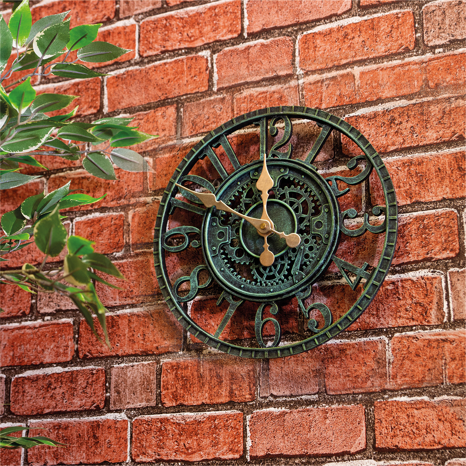 This fabulous decorative outdoor wall clock from St Helens Home and Garden would make a welcome addition to any garden thanks to its charming open faced, cog and wheel design. The clock is hand painted and made from polyresin making it long lasting and suitable for the rigours of outdoor use. Supplied with a fitted hanging bracket meaning it is extremely quick and easy to mount on outdoor walls, fences, summer houses, conservatories and sheds. Sit back, enjoy the beauty of your garden and literally watch time go by. The clock requires 1x AA battery (not supplied).