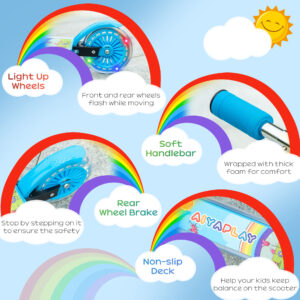 With this HOMCOM kids scooter, days out are extra special. As they ride, the wheels light up, whilst the LED around the foot deck glow when the switch is on. There’s also built-in music, which adds to the fun. With adjustable handlebars and a durable metal frame, it’s suitable for long term use ?? as your child grows, so will the kids scooter. It’s wrapped with thick foam, making it comfortable to hold. Finished with a rear brake, which brings it to a swift stop; a safe way for endless enjoyment.