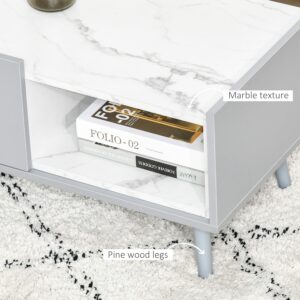 Twice the style comes in form of this marble coffee table from HOMCOM. A light grey outer-shell and inner marble-effect table, creates an eye-catching look suitable for practically every home. Even better, the cocktail table features a drawer and middle compartment for storage and display – perfect for books, magazines and decorations to give your space a personal touch. Flat top also offers extra holding room. Made from particle board, the white coffee table with storage is durable, with wooden legs to finish for stability.