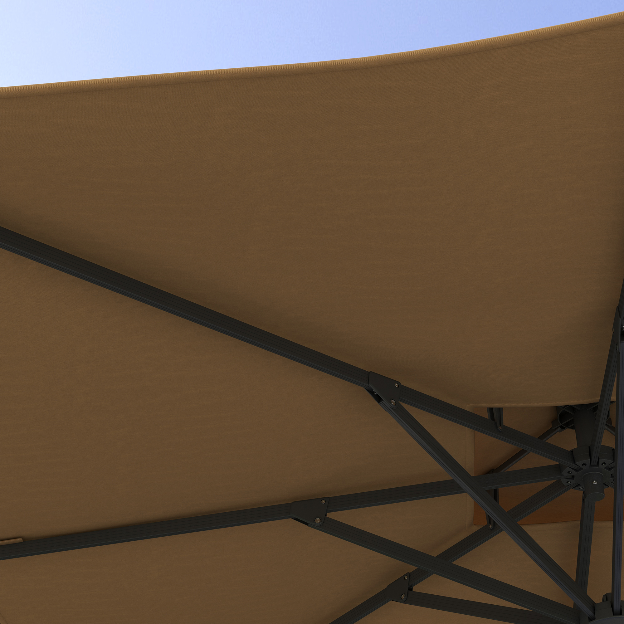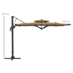 This Outsunny garden parasol with base included offers you lots of shade, at an angle you control. Step on the foot pedal and rotate the canopy 360 degrees. The powder coated aluminium frame means a strong structure, with the hydraulic mechanism making this garden umbrella easy to open and close.