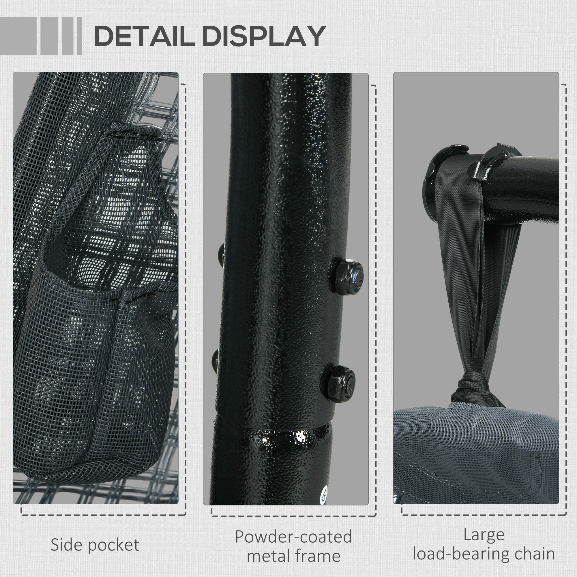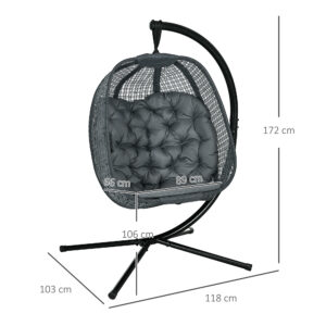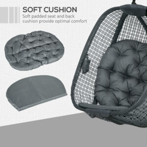 Make the most of your lazy days with this hanging egg chair from Outsunny. The curved back, spacious seat and thick padded cushion ensure plenty of comfort!. The hanging stand is made from powder coated steel – holds up to 120kg. The removable and foldable seat means easy storage when not in use.