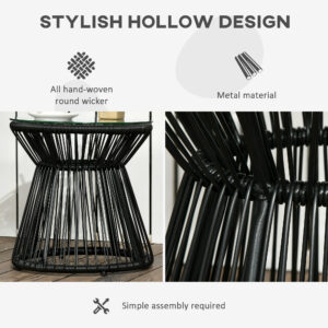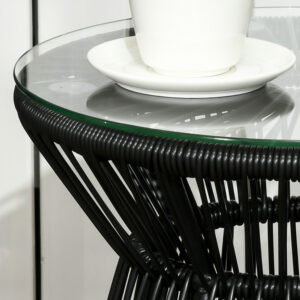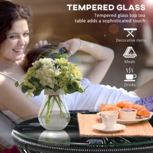 This Outsunny garden table is twist on your standard rattan designs: coming in a wicker string design, this is the perfect update for your outdoors. A powder coated metal frame means a strong core, with the large base ensuring balance. Comes with a 5mm tempered glass tabletop for a sleek and safe holding place.