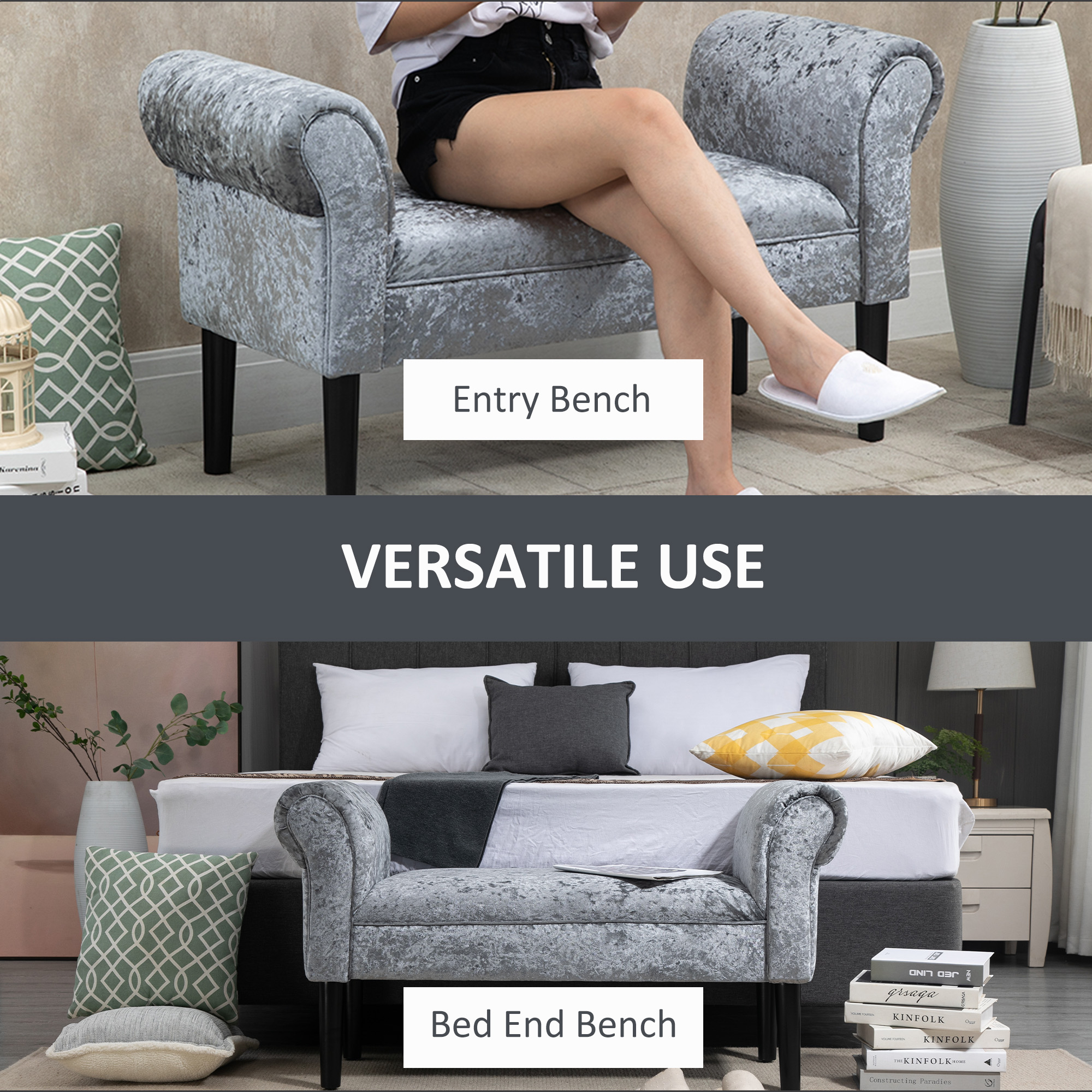 Add a touch of class with this stylish ottoman bench from HOMCOM. Upholstered in crushed velvet-feel fabric, it’ll be an elegant addition to your home, whilst the thick padded cushion ensures you’re in complete comfort when sitting. It’s ideal for the end of your bed ?? perfect for getting ready in the mornings. Or you can place it in the hallway for putting your shoes on ?? you can even place it in the living room for extra seating; a modern bench that’ll add sophistication to your d??cor.