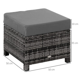 Finding the right style is necessary to help bring your garden together and this Outsunny footrest does just that. The PE wicker is suitable for outdoor use, resistant against mild weathering. The metal frame creates a sturdy and supportive structure. A soft top cushion offers plenty of comfort. Whether you are using it as an extra seating or just to put your feet up, this ottoman will be a great addition to your garden and home.