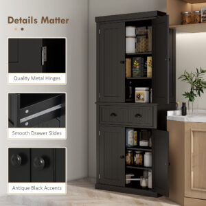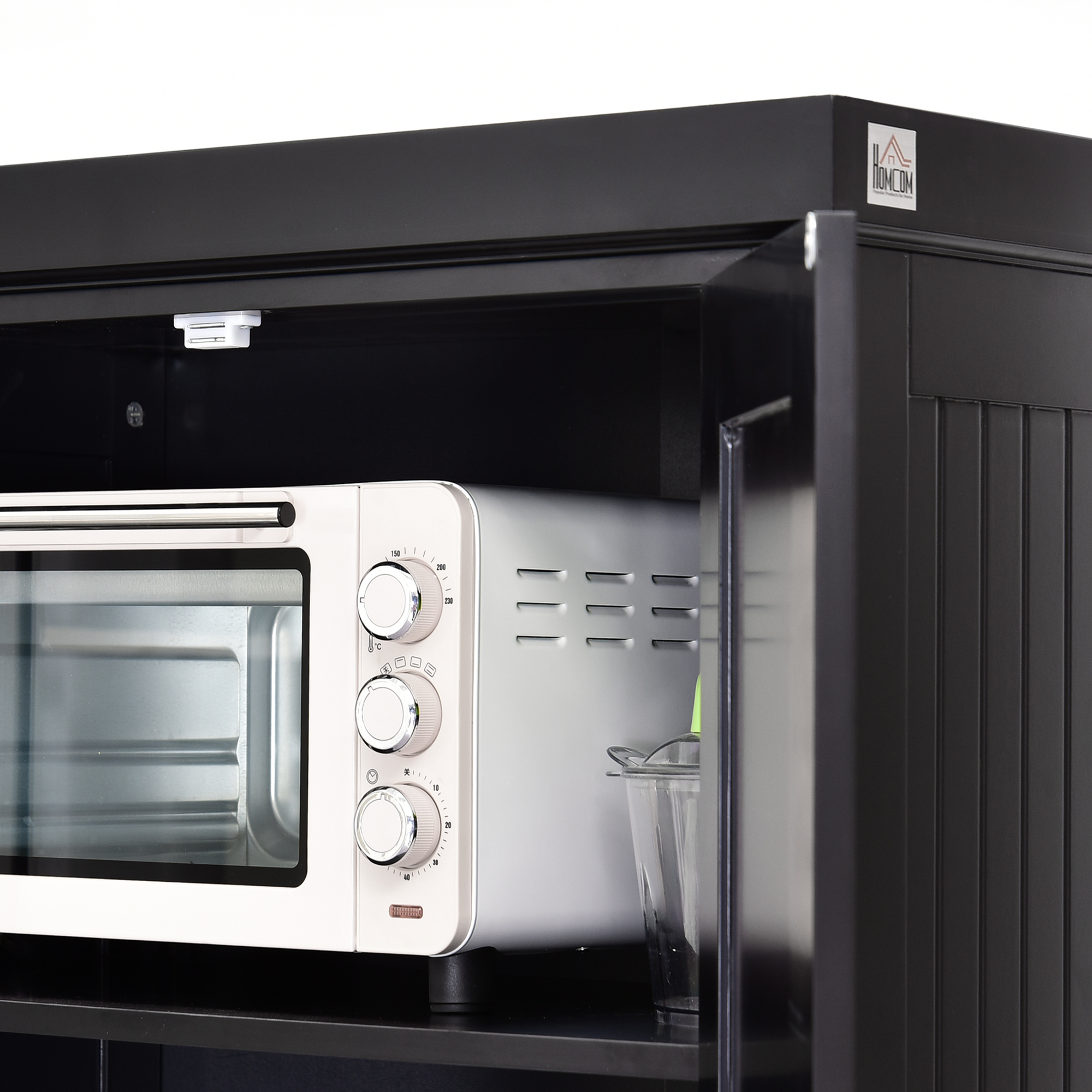 This HOMCOM tall storage cabinet is an ideal solution for any kitchen. Made from MDF with reinforced backboards, it is ideal for storing all your kitchen items from accessories, utensils, dry good and even your cookbooks. The kitchen larder cupboard has 4 doors with 3 adjustable shelves for you to position as required. The door handles and knobs are having a brushed nickel finish, giving the unit elegance and style. This is a great unit to have to match any room d??cor.